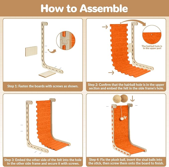 - Easy Assembly: Nxwjoy's cat scratchers have clear installation instructions and are easy to assemble. Nxwjoy is committed to providing you and your pet kids with satisfactory merchandise, and we are confident that our customers will love our products as much as we do. However, if you are not satisfied with our products, please feel free to contact us. We will try our best to provide you with satisfactory service.