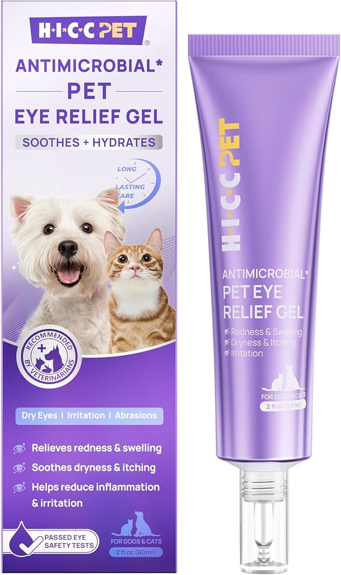 - Must-Have for Daily Pet Care – HICC PET Eye Relief Gel for Dogs can be applied directly into your pet’s eyes safely, helping relieve eye irritation and moisturize dry eyes. Made with safe, natural anti-inflammatory ingredients, it supports dog eye infection treatment, reduces redness and swelling, helps remove tear stains, soothes conjunctivitis (pink eye), minor abrasions, and promotes daily eye hygiene.