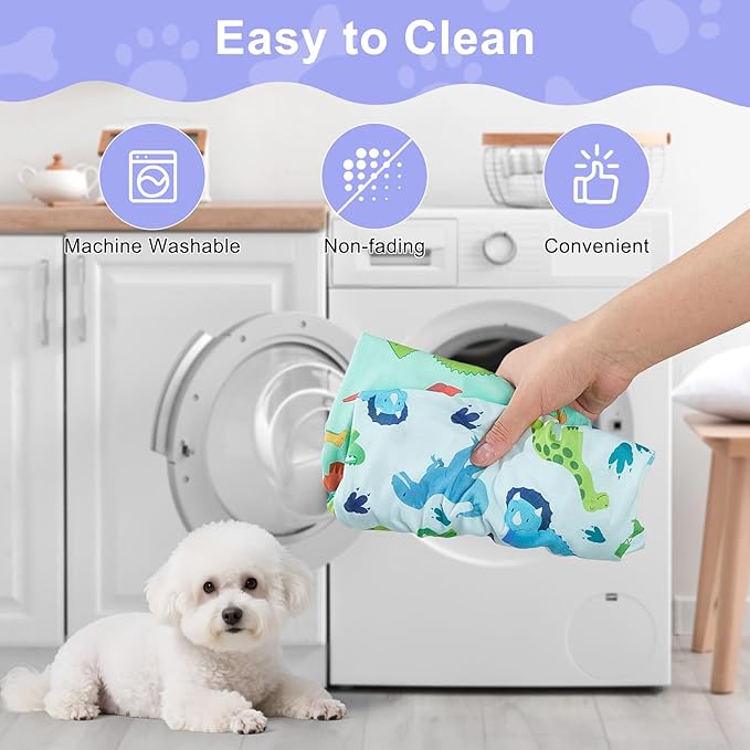 - Bright Patterns:The 4 pieces of dog pajamas have different theme patterns for male and female dogs, such as butterfly, dinosaurs, love-heart,duck,shark and other cute cartoon patterns;The pattern is brightly colored, which makes your dog look more charming in these dog pajamas;it is also very suitable for daily play and photo shooting