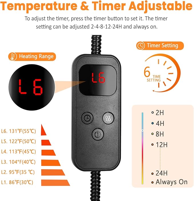 - Safe Heating with Adjustable Temperature and Timer: Equipped with a low-wattage, energy-efficient heating pad, the adjustable temperature and timer allow you to tailor the heat level to your cat's preferences, guaranteeing a perfectly cosy experience every time.