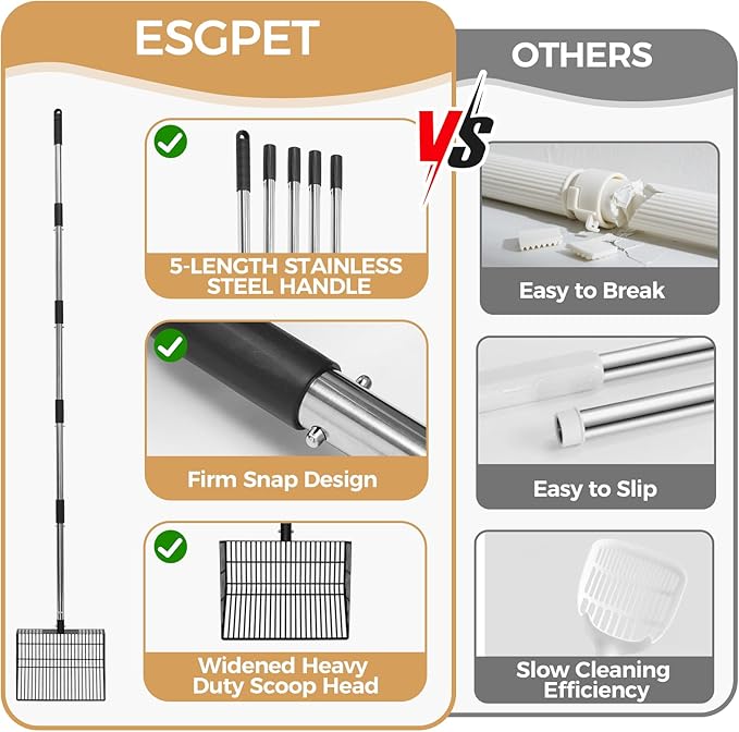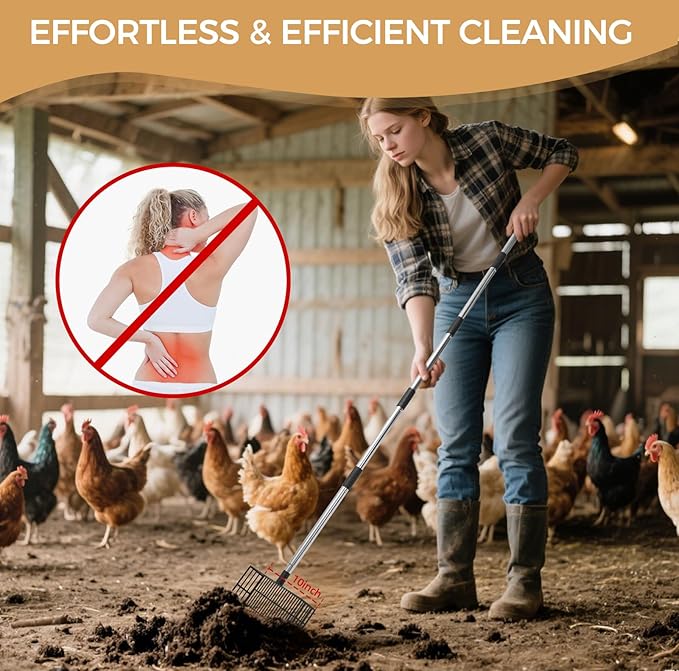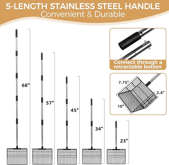 Cat Litter Scoop, Long Handle Detachable Metal Scooper with Deep Sifting Shovel,Heavy Duty Adjustable No Bending Back Pet Poop Shovel Chicken Poop Scooper (23-68 inch (Joinable Handle))