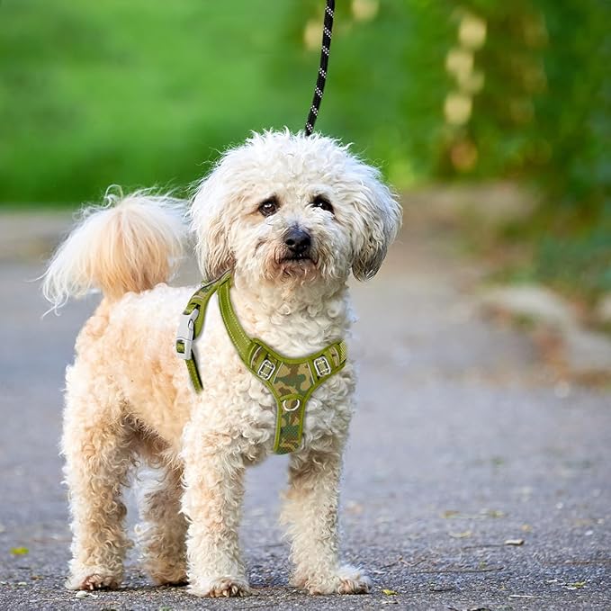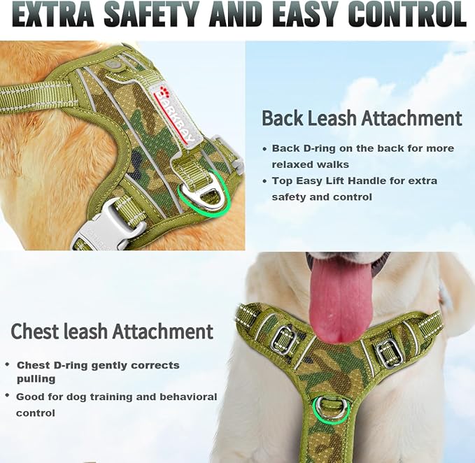 BARKBAY No Pull Dog Harness Large Reflective Dog Harness with Front Clip and Easy Control Handle for Walking Training Running with ID tag Pocket(Camo,XS)
