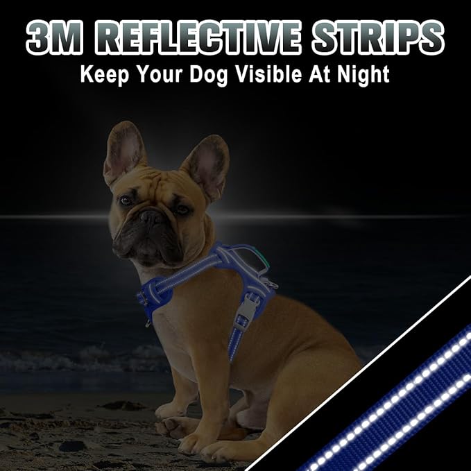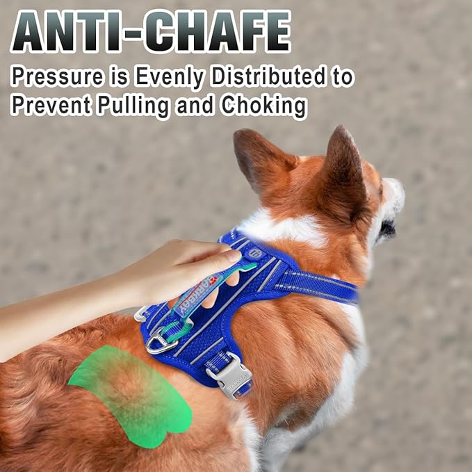 BARKBAY No Pull Dog Harness Large Reflective Dog Harness with Front Clip and Easy Control Handle for Walking Training Running with ID tag Pocket(Sapphire Blue,XS)