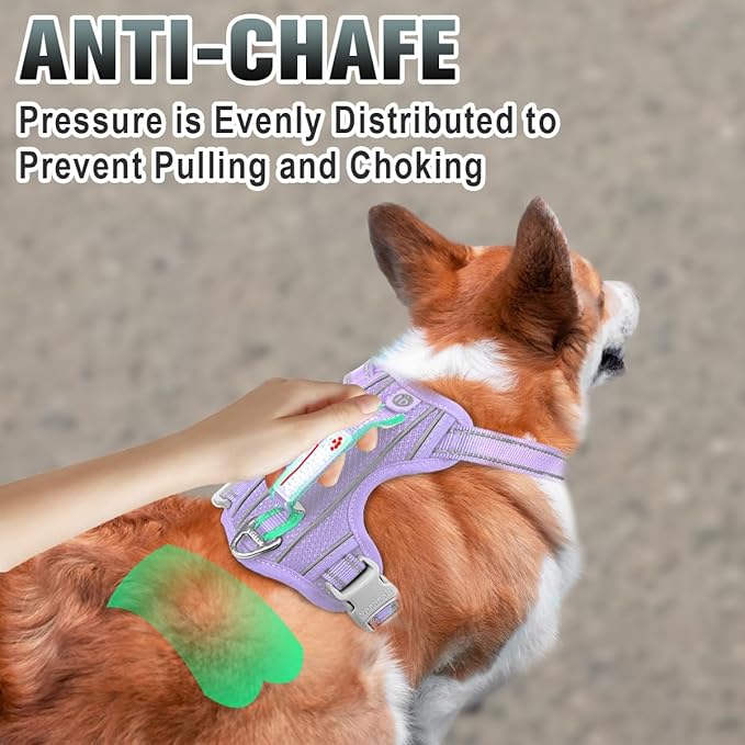 BARKBAY No Pull Dog Harness Large Reflective Dog Harness with Front Clip and Easy Control Handle for Walking Training Running with ID tag Pocket(Violet Purple,XS)