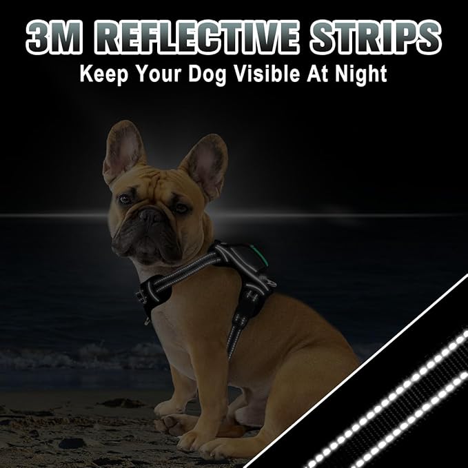 BARKBAY No Pull Dog Harness Large Reflective Dog Harness with Front Clip and Easy Control Handle for Walking Training Running with ID tag Pocket(Black,XS)