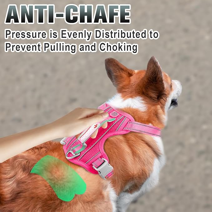 BARKBAY No Pull Dog Harness Large Reflective Dog Harness with Front Clip and Easy Control Handle for Walking Training Running with ID tag Pocket(Pink,XS)