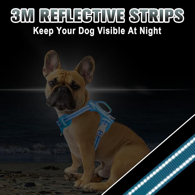 BARKBAY No Pull Dog Harness Large Reflective Dog Harness with Front Clip and Easy Control Handle for Walking Training Running with ID tag Pocket(Blue,XS)