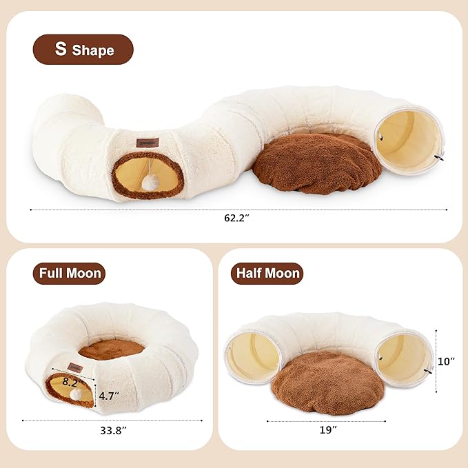 - Interactive Fun: The tunnel can be different combos like a full moon, S-shape or half moon to accommodate your pet's play needs. The included two interactive toy balls are the perfect setup for multi-cat play, ensuring endless fun and engagement.