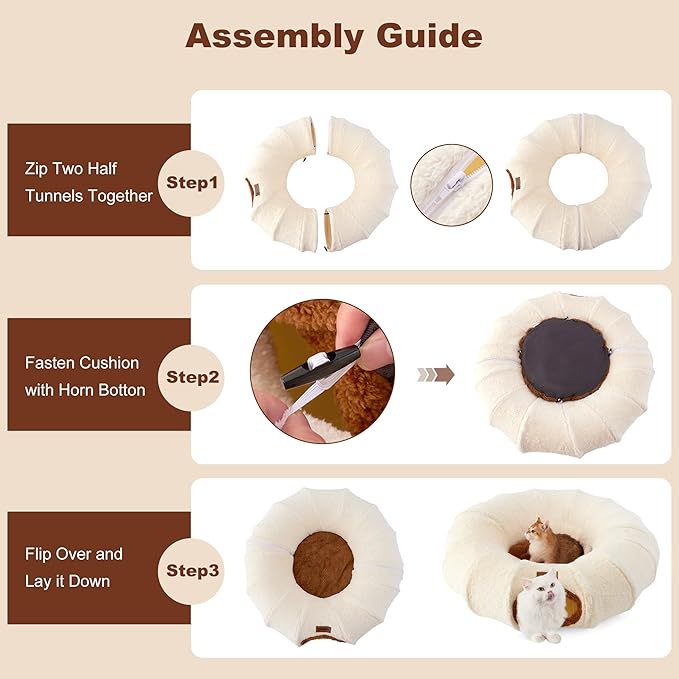 - Easy to Clean: With your convenience in mind, ZOMISIA cat tunnel bed is effortless to assemble and quick to store. The removable cushion is machine washable.