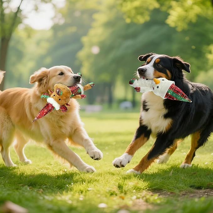 - Plush Dog Toys for Aggressive Chewers - Squeaky & Durable:The double-layer plush toy design can make the toy more bite resistant, last longer, and attract the dog's attention with its squeaking sound, bringing more fun to Christmas