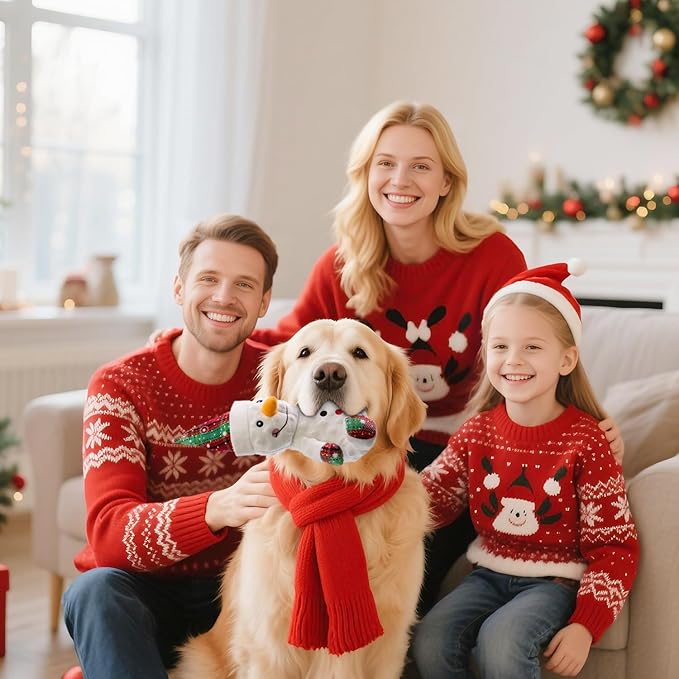- Built-in Attractive Squeakers: Dogs are highly sensitive to sound. Our Christmas squeaky toy built in squeakers thoughtfully distributed throughout the toy, can effectively arouse the interest of the dogs and stimulate their desire to play. A vocal bladder in the head and crinkle paper on the tail, which emits sound when pets bite and greatly increases your dog's interest in playing with the toy