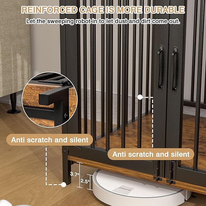 - Sturdy and Chew-Resistant Build: Crafted as a strong large furniture dog crate with durable particleboard and thick metal tubes for lasting use, providing a safe, chew-resistant space for your dog.