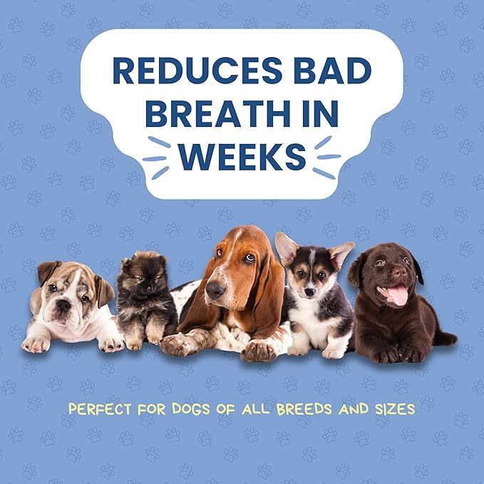 - ✅ DUAL-ACTION ORAL & DIGESTIVE SUPPORT: 1.-Works externally by coating teeth and gums to fight plaque and tartar. 2.-Internally by supporting digestion to reduce bad breath from the inside out. Promotes strong teeth, fresh breath, healthy gums and balanced gut health. Complete daily oral health supplement for dogs.
