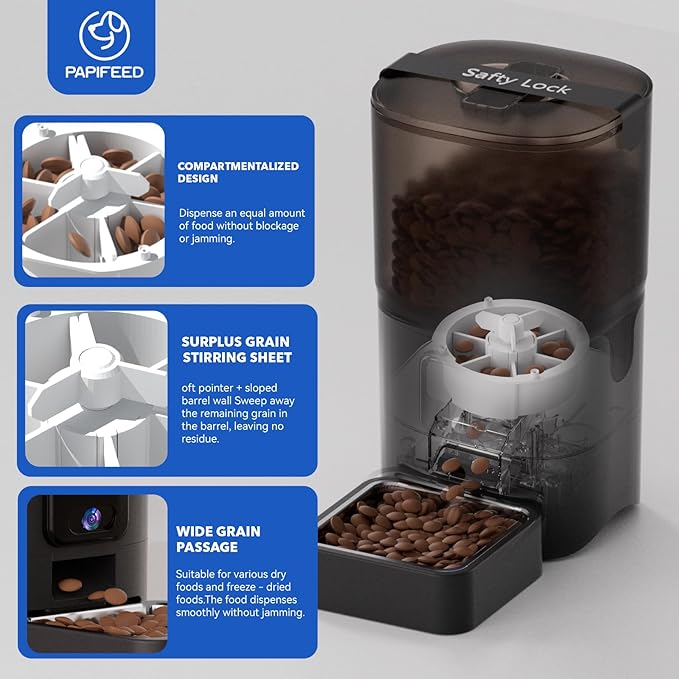 PAPIFEED Automatic Cat Feeder,Camera 1080P HD - 6L Pet Feeder, 2.4/5G WiFi Smart App Control, Bluetooth Assist Link,Wide-Angle Lens,Automatic Feeder for Small and Medium-Sized Pets (Wide Angle Video)