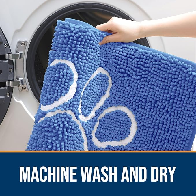 OLANLY Dog Door Mat for Muddy Paws 48x30, Paw Print Design, Absorbs Moisture and Dirt, Absorbent Non-Slip Washable Doormat, Quick Dry Chenille Mud Mat, Entry Indoor Entryway Carpet, Cornflower Blue