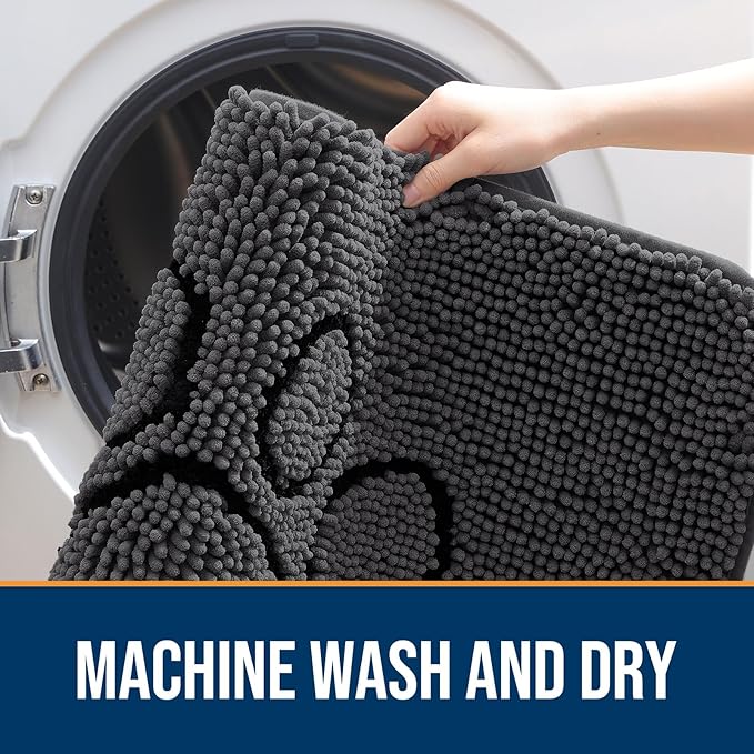 OLANLY Dog Door Mat for Muddy Paws 36x24, Paw Print Design, Absorbs Moisture and Dirt, Non-Slip Washable Doormat, Quick Dry Chenille Mud Mat, Entry Indoor Entryway Carpet, Dark Grey and Black