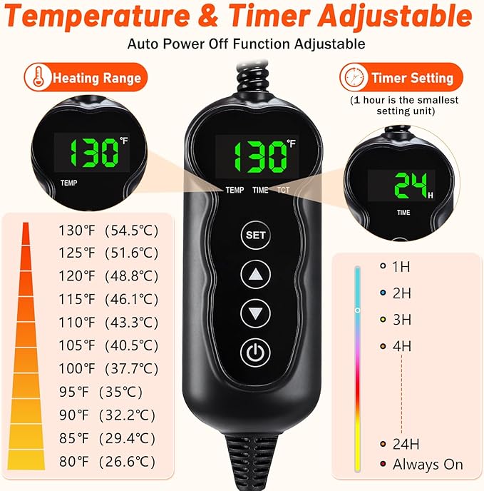 - 【Timer and Anti-Overheating Design】The electric cat bed features a timer function with an auto shut-off range from 1 to 24 hours, conserving energy and preventing burns caused by excessive heating. The timer LED will decrease by one level to indicate the remaining time. Additionally, a built-in intelligent temperature sensor in the heating bed prevents overheating, ensuring the safety of your pet.