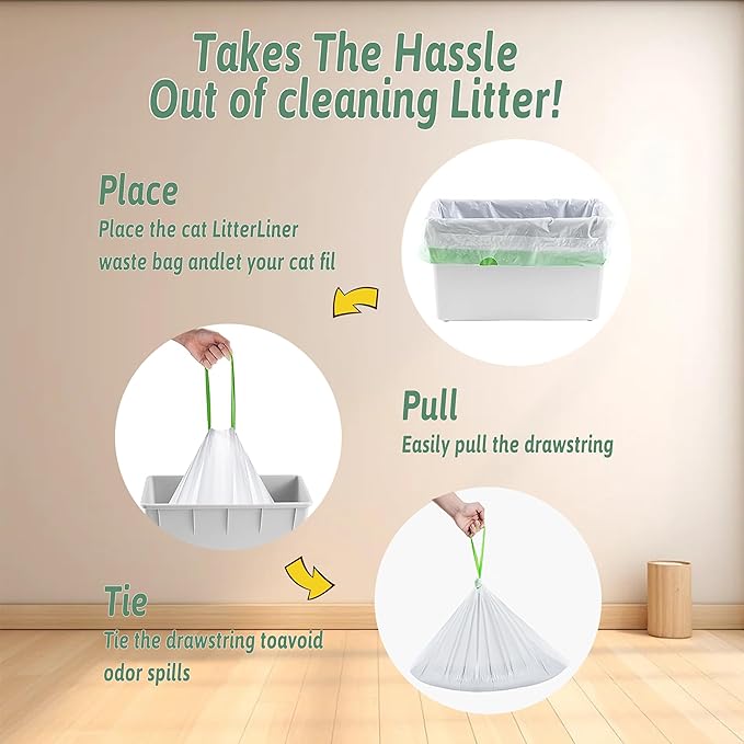 - 【Thickened, Leakproof & Odor-proof】 Made of high-quality thickened material, these litter liners are strong and puncture-resistant, effectively locking in odors and liquids to keep the environment clean.