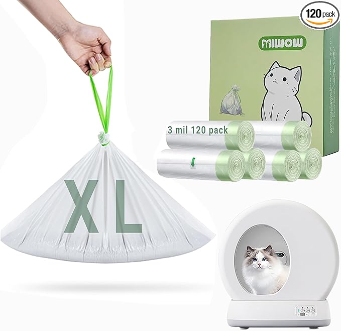 120 Count Miwow Cat Liner for Automatic Litter Box, Litter Box Liner Replacement Waste Bags, Thickened Leak-Proof & Odor-Proof Design, Compatible for Meowant and More Automatic Litter Box (6 Rolls)