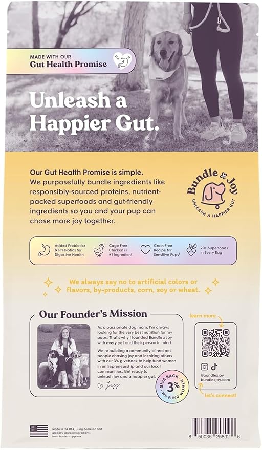 Bundle x Joy Superfood Dry Dog Food - Pet Food for Small, Medium and Large Breeds - Made with Real Ingredients - Nutrient Dense Probiotic Dog Food to Support Healthy Digestion (12 Pound, Chicken)