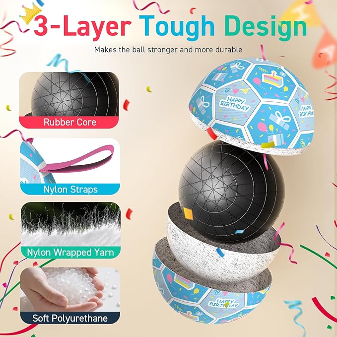 - Perfect Dog Birthday Gift: This soccer ball dog toy is specially designed as a fun and thoughtful birthday gift for your puppy. With vibrant colors and playful straps, it’s ideal for celebrating your dog’s special day with joy and activity