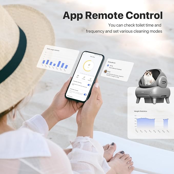 - Equipped with 4 weight sensors and 5 infrared detectors to accurately monitor cat activity. A dedicated Kitten Mode protects cats under 3.3 lbs. For multi-cat homes, recognition requires a weight difference of ≥1.1 lbs / 0.5 kg, ensuring accurate tracking.