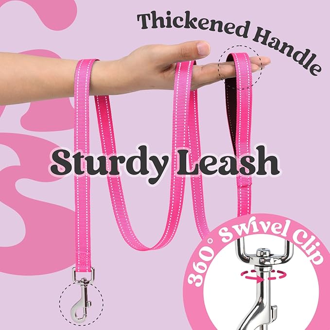 - Harness & Leash Set: Trendy color-combo design, perfect for young, style-conscious pet owners. Our harness set includes a matching 5.1 ft leash in the same color for a coordinated look. It features a skin-friendly, cushioned handle for gentle grip