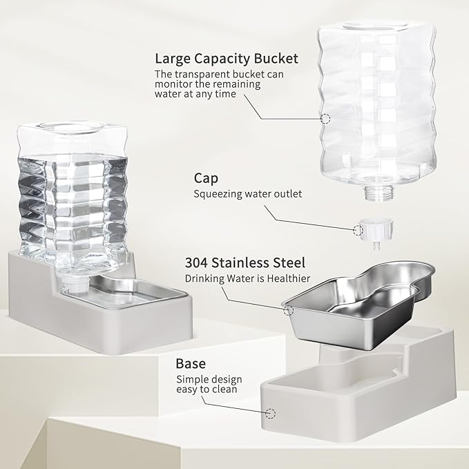 - Smart Gravity Feed & Effortless Refilling: Engineered with an efficient gravity-fed system, this dispenser automatically maintains the ideal water level in the stainless steel bowl as your pet drinks. Spills are minimized, and your pet enjoys a comfortable, natural drinking position. Perfect for pet parents with busy schedules—it’s like having a caring assistant for your furry family members!