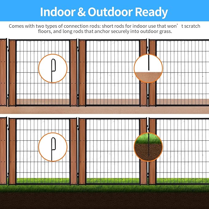 - 【Suitable for indoor and outdoor use】Our dog fence comes with two types of plugs, one for indoor use and one for outdoor grass as well. The boards are made of brand new material PVC carbon fiber boards, which are completely waterproof as well as formaldehyde-free. It can be used completely outdoors.