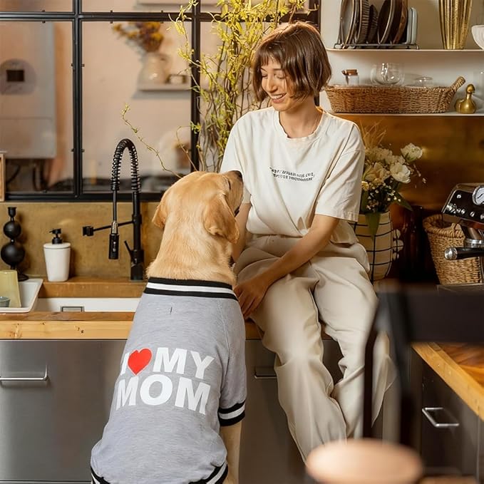 GreenJoy Cute Dog Sweater - Stretchy Dog Pullover Sweatshirt,Soft and Warm Winter Clothes for Boy & Girl Dogs,Suitable for Puppies & Adult Dogs (Light Grey (I Love My Mom), Medium)