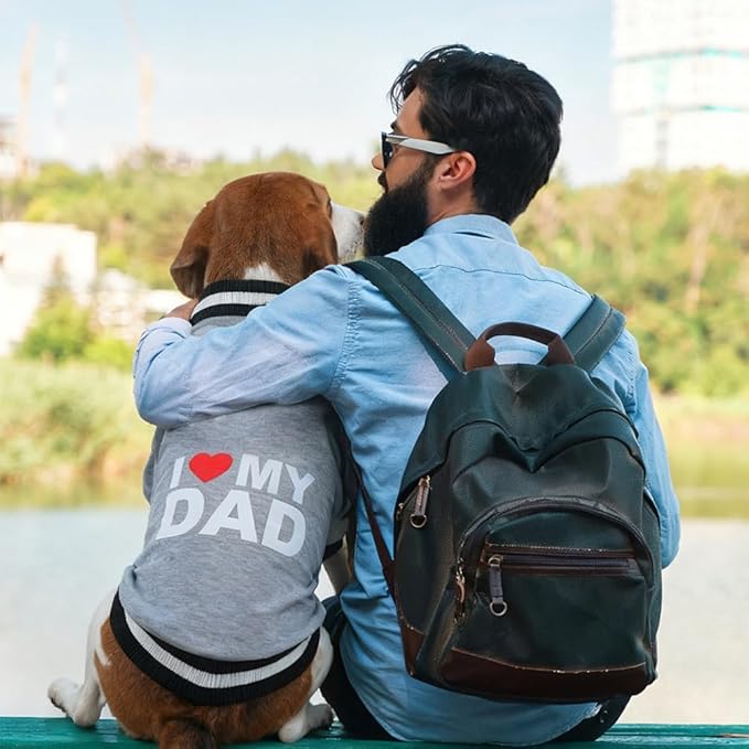 - [Fashionable Pet Sweater] - This stylish and breathable dog outfit features a V-neck collar and a bold "I LOVE MY DAD/MOM" print on the back. Its unique design makes your pup stand out from the pack.