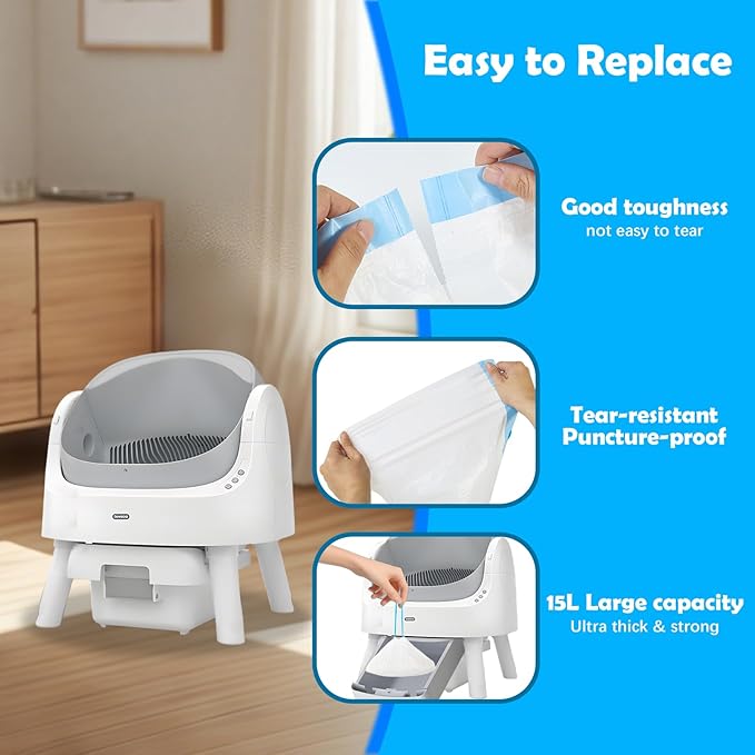 - 【Heavy-Duty & Tailored for Smart Litter Boxes】Crafted from high-strength, tear-resistant material, these cat litter box liners provide excellent durability and leak protection, ideal for high-frequency use in self-cleaning or intelligent cat litter systems. Not recommended for standard litter boxes.