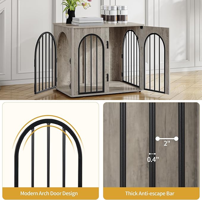 - Unique Arch Door: Our furniture dog crate adopts a novel arch design, which blends in with many modern furniture styles. The and elegant style of the arch creates a clean, tidy and comfortable living environment for you