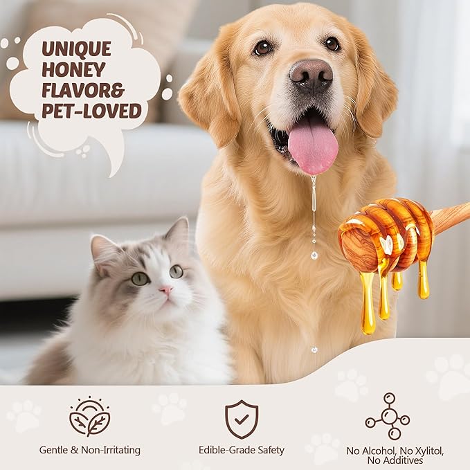 - Safe & Loved by Pets: Featuring a honey flavor pets enjoy, our alcohol-free, chemical-free dental spray for dogs teeth is gentle enough for all ages—from puppies to seniors—and safe for licking. One 150ml bottle serves all your pets.