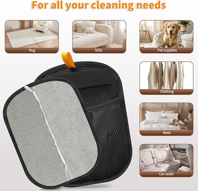 - 【Suitable for Any Fabric Surface】Whether used on clothes, beds, sofas, carpets, or car seats, these cat hair removal gloves work on almost any fabric surface. No more tedious rolling or spot cleaning Designed for multiple surfaces, it’s your go-to tool for all hair removal needs.