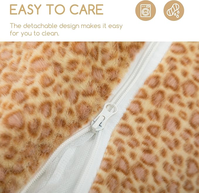 Hollypet Cat Bed Fluffy Plush Mutifuctional Double-Layer Soft Pet Couch Orthopedic Sofa Nest Beds for Small Cats and Dogs, Yellow Leopard (25x20x13 inch)