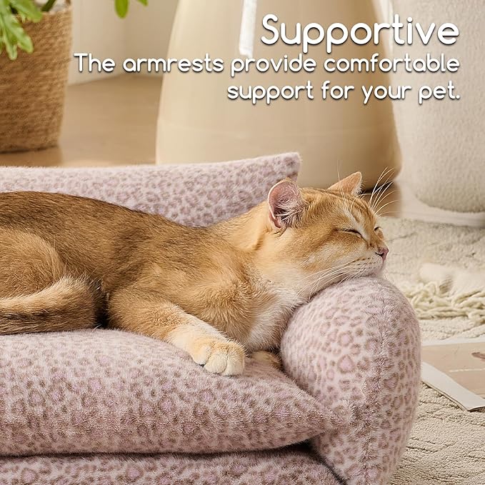 Hollypet Cat Bed Fluffy Plush Mutifuctional Double-Layer Soft Pet Couch Orthopedic Sofa Nest Beds for Small Cats and Dogs, Pink Leopard (21x15x8 inch)
