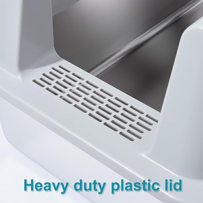 - Stainless steel litter box with cover is a perfect litterbox choice, as it never absorb any odors and so sturdy that could accompany years with your cats