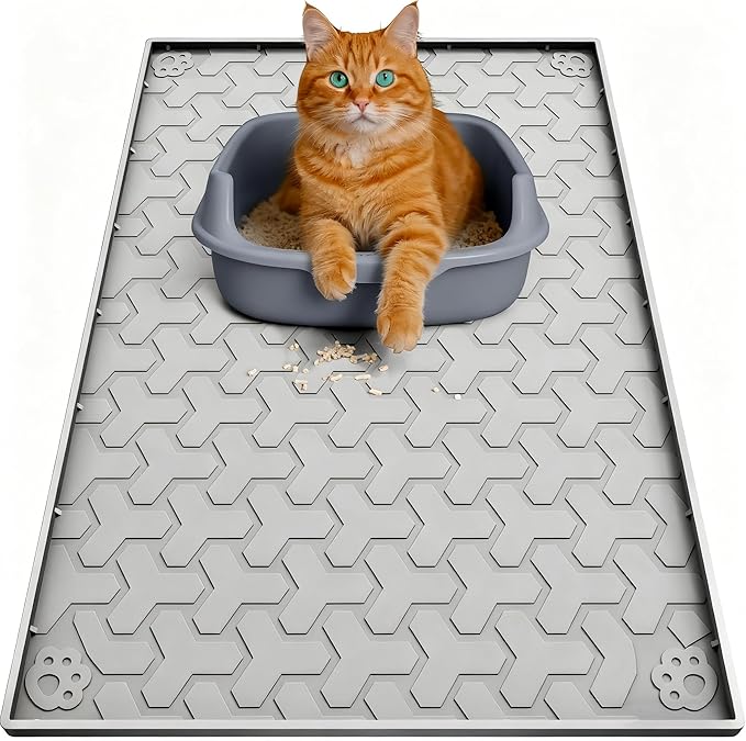 Cat Litter Mat for Litter Boxes - BPA-Free, Fits Most Sizes, Effective Litter Trapping, Easy to Clean, Waterproof, Non-Slip, 34" X 22", Light Gray