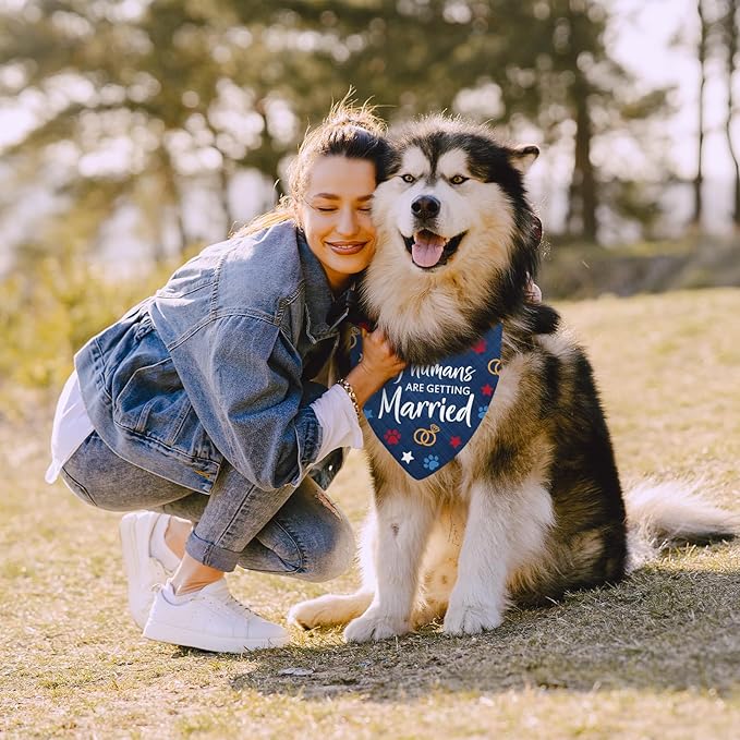 - Unique & Playful Design: These dog bandanas with merried designs is double-sided printing. The dog bandana up to 18.1x18.1x24.8 inches, ensures comfort for small medium pet dogs' neck sizes. Whether it's engagement or wedding, these puppy bandanas are a perfect gift