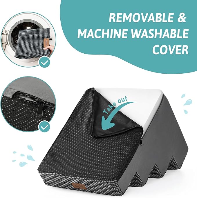 - Machine Washable Cover: Accidents happen, but stains and odors don't have to stay! Our removable cover of cat steps features a hidden waterproof liner that blocks liquids from reaching the foam core. For easy cleanup, simply unzip and toss the entire cover into the washing machine. Note: The foam interior should not be washed.