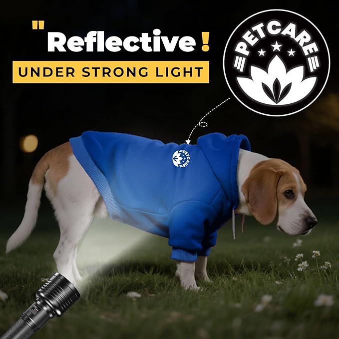 - Adorable Hood with Reflective Design - Our basic dog hoodie features a cute hood to keep your petโs head warm, making pets appear more stylish and cute. Ideal choice for winter walks. Reflective "PETCARE" logo can enhance the pet's visibility in low-light conditions, ensuring safety, especially during outdoor activities or nighttime walks. Reflective design adds convenience while enhancing the stylish look of this minimalist solid-color design