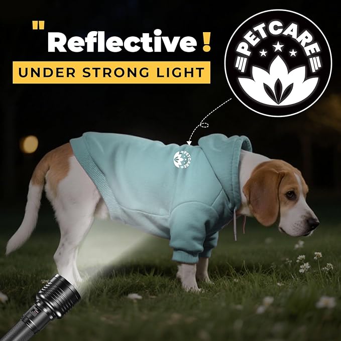 - Adorable Hood with Reflective Design - Our basic dog hoodie features a cute hood to keep your petโs head warm, making pets appear more stylish and cute. Ideal choice for winter walks. Reflective "PETCARE" logo can enhance the pet's visibility in low-light conditions, ensuring safety, especially during outdoor activities or nighttime walks. Reflective design adds convenience while enhancing the stylish look of this minimalist solid-color design