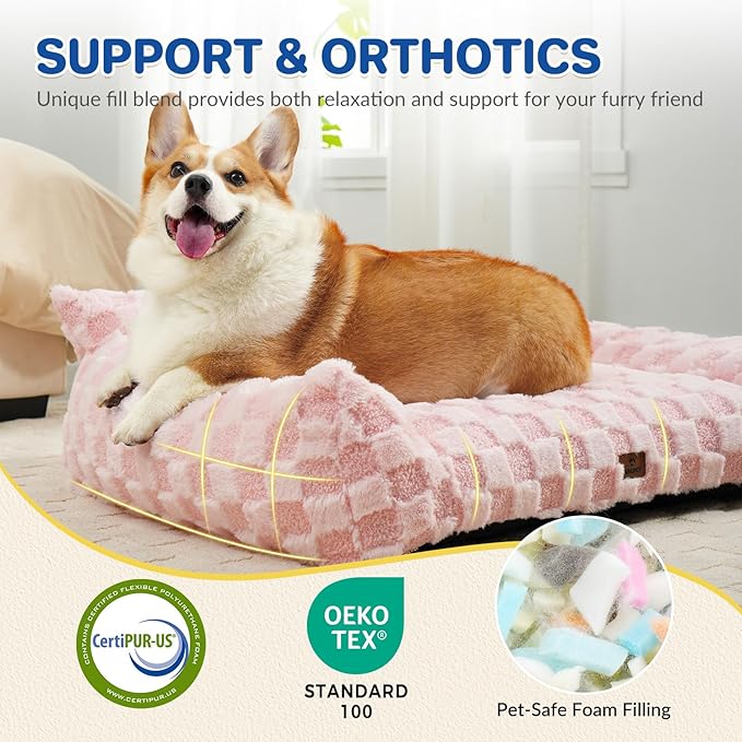 Large Dog Bed Sofa, Fluffy Pet Bed for Medium and Large Dogs, Supportive Dog Couch Sofa for Dogs, Pet Sofas with Washable Cover & Non-Slip, 38 inch, Pink