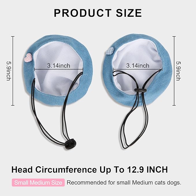 - Cute Elegant & Vintage Design:Featuring a timeless retro style, the bule beret with its cute little heart accessory and the chic lace rabbit bandana ,will make your pet stand out with sophistication. The adjustable buckle ensures the beret stays perfectly perched, creating a picture-perfect princess silhouette for birthdays and holiday photos.
