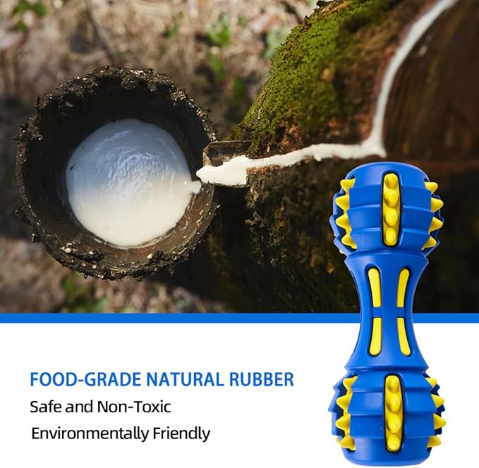AUSCAT Teething Dog Chew Toys, Durable Squeaky Dog Toys, Rubber Chew Toys for Dogs, Dumbbell Shape, Blue