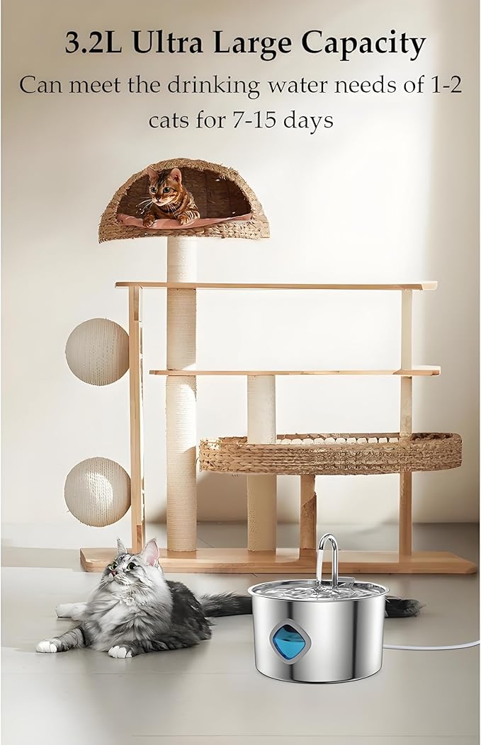 - 1.Large 3.2L Capacity:With a generous 3.2-liter water reservoir, this fountain minimizes the need for frequent refills, ensuring your pets have access to fresh water throughout the day, even when you're away.