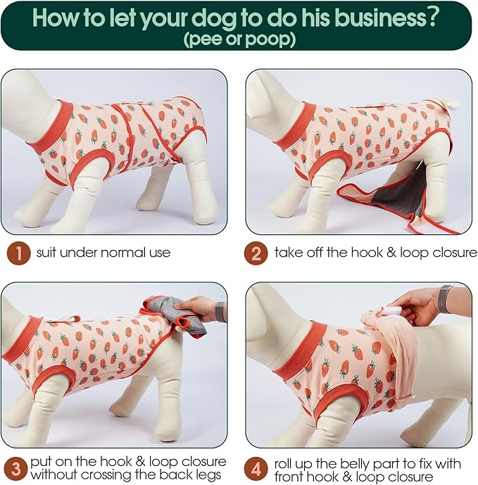 - RECOVERY SUIT for MALE FEMALE DOGS: Suitable for spaying and neutering, with an adjustable back length and closure for easy donning and doffing. Machine washable, easy to clean and dries quickly to ensure optimal hygiene for your pet during recovery