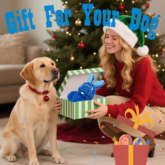 Squeaky Dog Toy Plush, Stuffed Crinkle Tug of War Dog Toy Keep Them Busy Animal Pet Puppy Interactive Birthday Toy for Small Medium Large Dogs (Blue)