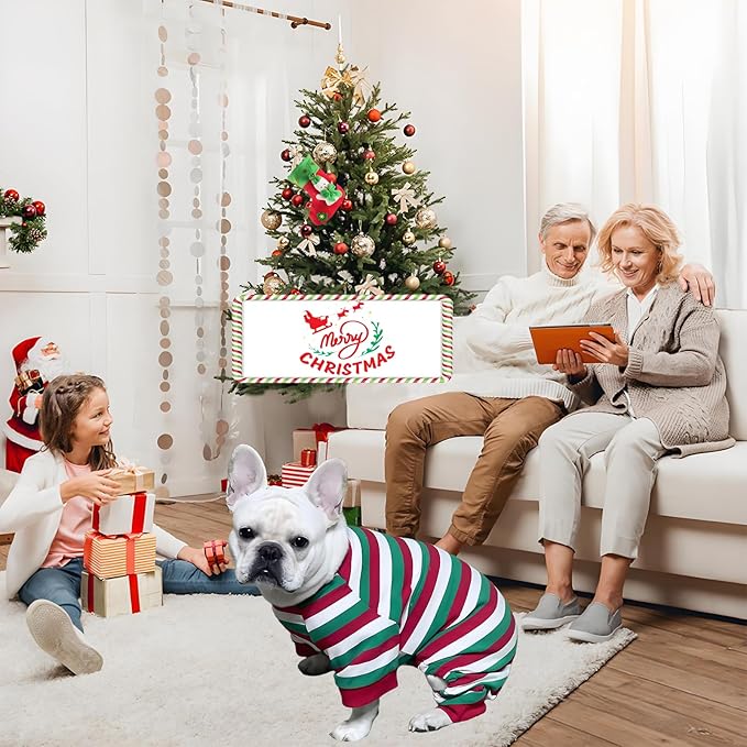 Dog Pajamas Cotton Striped Pet Jumpsuit, Breathable Comfy Pjs for Puppy and Cat, Dog Christmas Pajamas Shirts for Small Large Dogs Onesie Boys and Girls